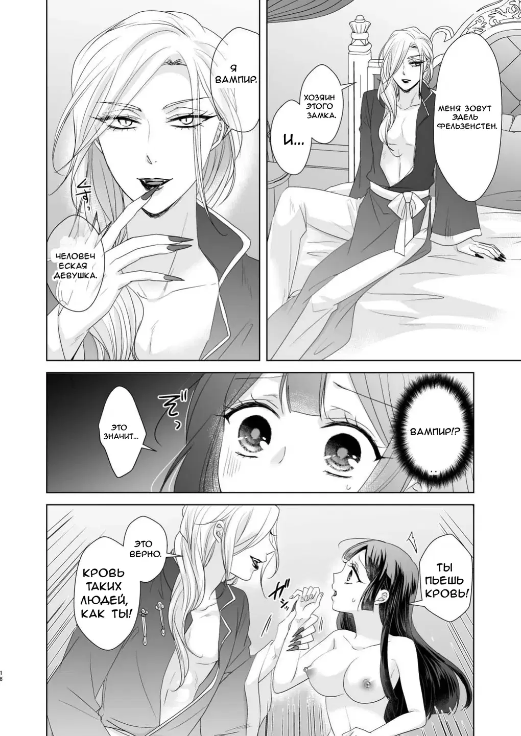 На главную героиню кто-то нападает. Убегая, она теряет равновесие и падает со скалы. По другую сторону ее спуска... другой мир. Там ее находит мужчина андрогинного вида. Он подбирает ее и отвозит в свой замок, но... оказывается, этот мужчина на самом деле вампир! Сексуальная история о грубом вампире и молодой человеческой женщине.