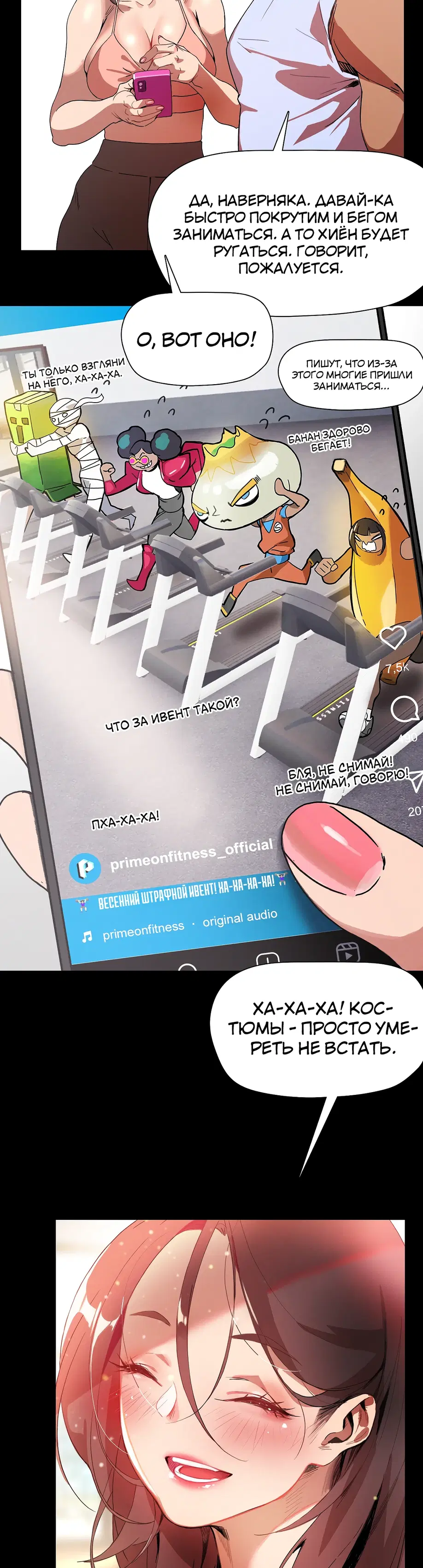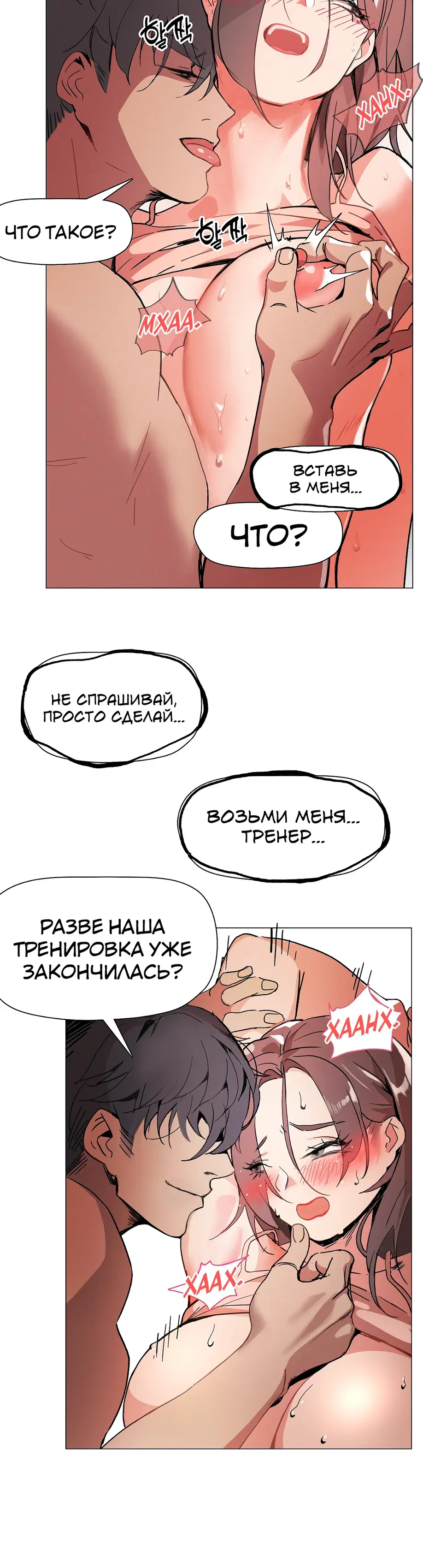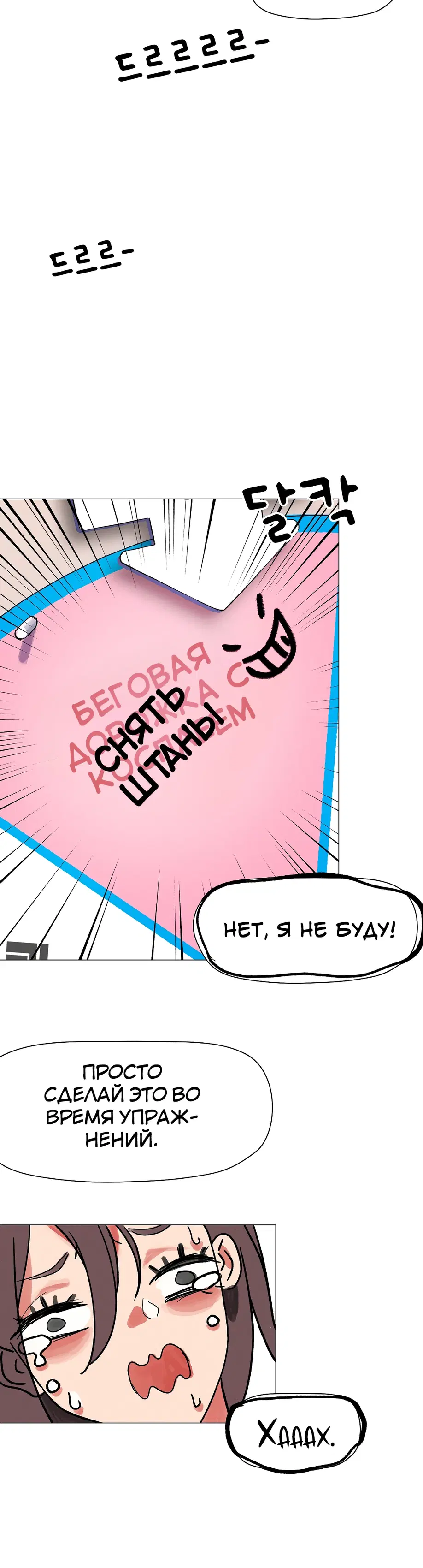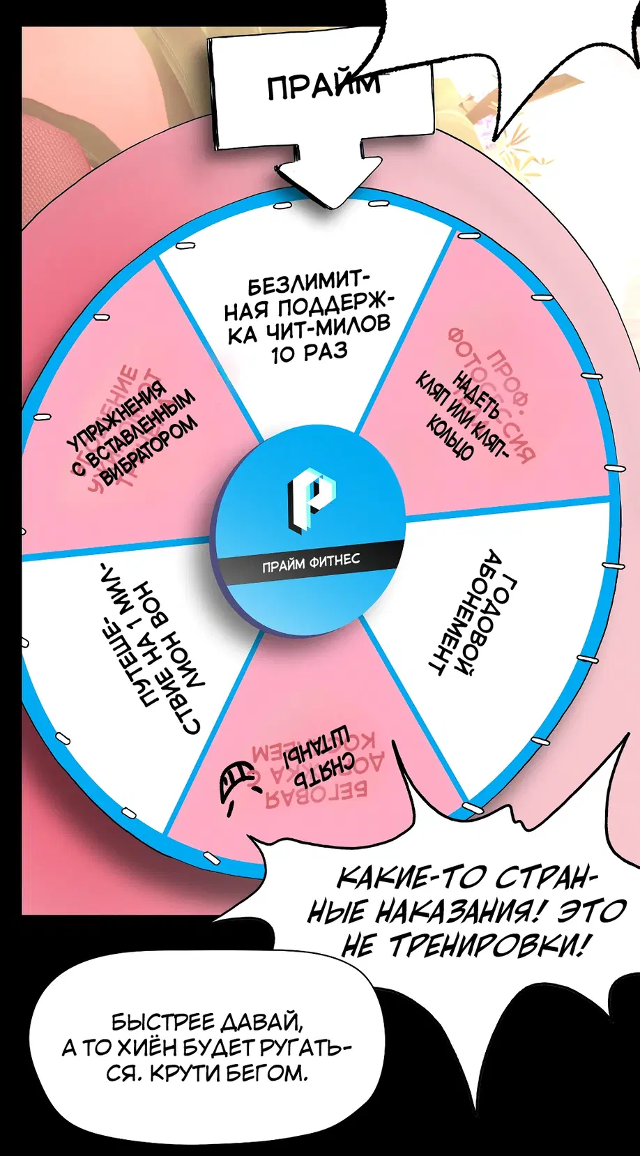 Подруга советует Суа посещать занятия по фитнесу 1:1, и она усердно старается выучить упражнения, но бутылка с водой учителя постоянно касается ее нижней части тела. «Сэр, не могли бы вы... убрать эту бутылку с водой?»«Бутылку с водой?»«...Там... там... там что-то твердое застряло между... Я думаю, там застряло что-то твердое...»«А... это... Это не ведро...»